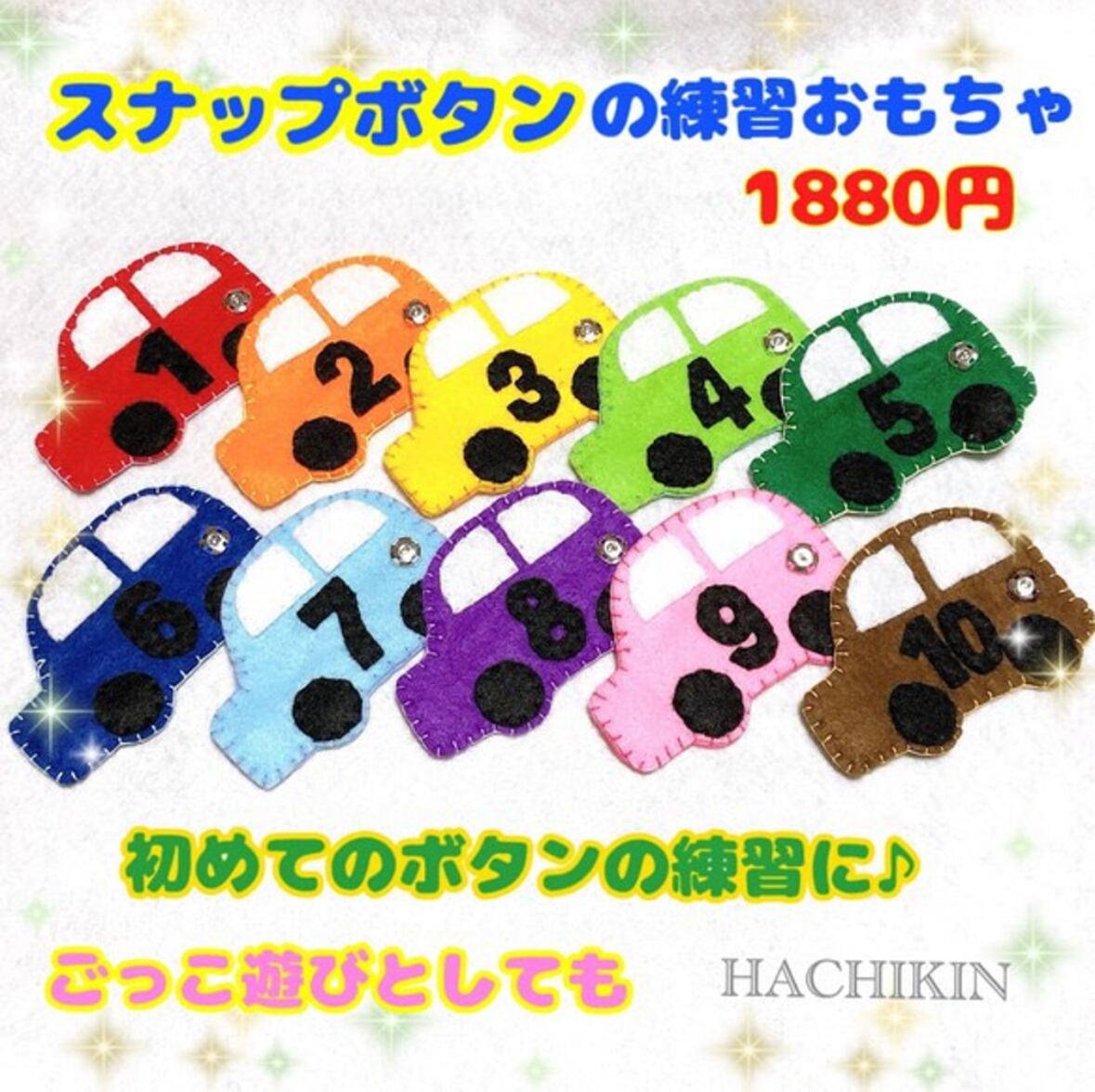手縫い⭐︎スナップボタンの練習⭐︎カラフルカー⭐︎知育おもちゃ